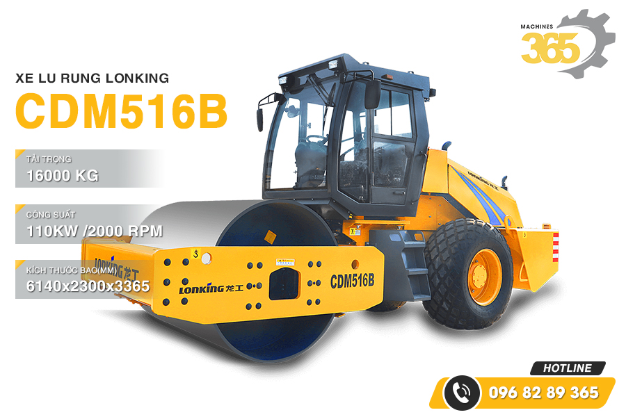 Với tải trọng làm việc của xe lên đến 16 tấn, tổng lực rung lên đến 31/16 tấn thì chiếc lu rung Lonking CDM516B này rất phù hợp để hỗ trợ trong việc gia cố nền móng cho những nhà cửa, công trình, xây dựng bờ kè, sườn dốc.